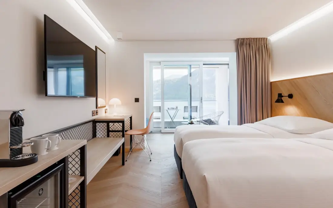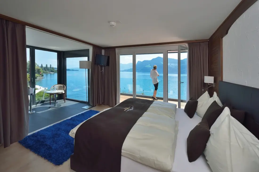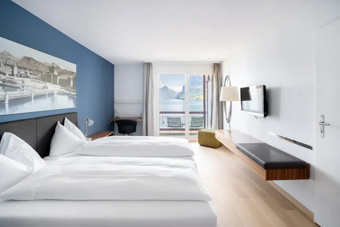 Many of the best 4-star hotels in Lucerne offer rooms with stunning views of Lake Lucerne and the surrounding mountains. Hotels like HERMITAGE Lake Lucerne, Art Deco Hotel Montana, and Hotel Seeburg are particularly known for their lakefront locations. These hotels often feature private balconies, panoramic terraces, and waterfront dining areas. Lake-view rooms tend to be more expensive than standard rooms, but many travellers consider the scenic views worth the upgrade