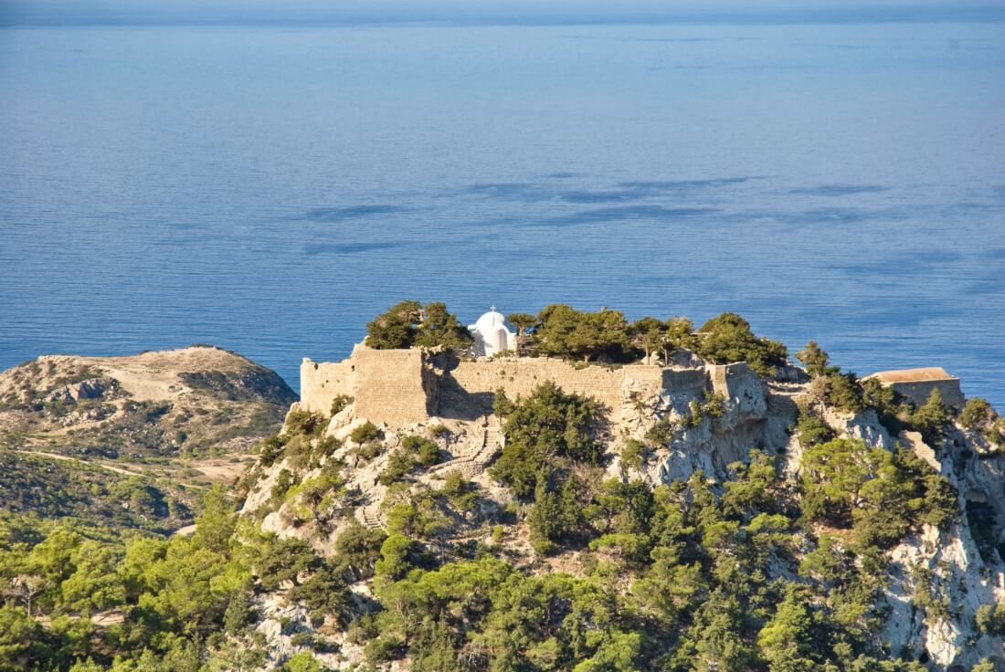 Monolithos Castle is a medieval fortress perched dramatically on a rocky outcrop overlooking the ...